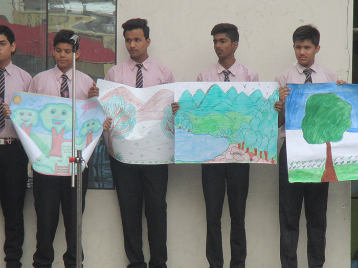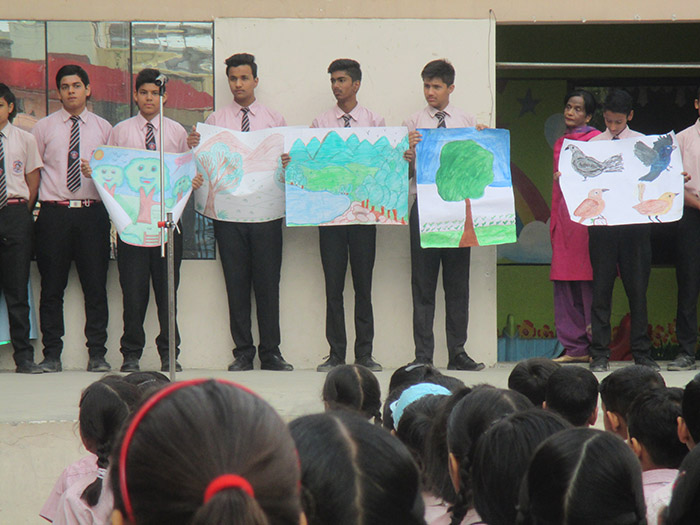 The theme was "save earth save environment". All the students participted enthusiastically in the environment.